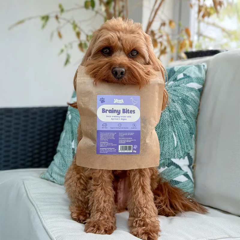 Duck Brainy Bites are a fantastic training treat that are made from 90% real duck. We then add fruits and vegetables which provide an antioxidant boost for total brain health. Measuring just 3cm our brainy bites are the ideal bitesize healthy treats, perfect for training dogs.Â